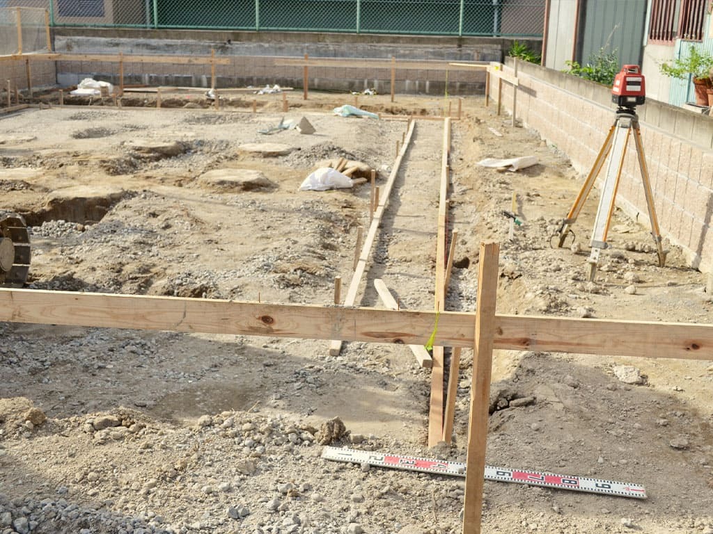 そこからさらに外部の基礎を作るためにセメントを敷き詰めます。